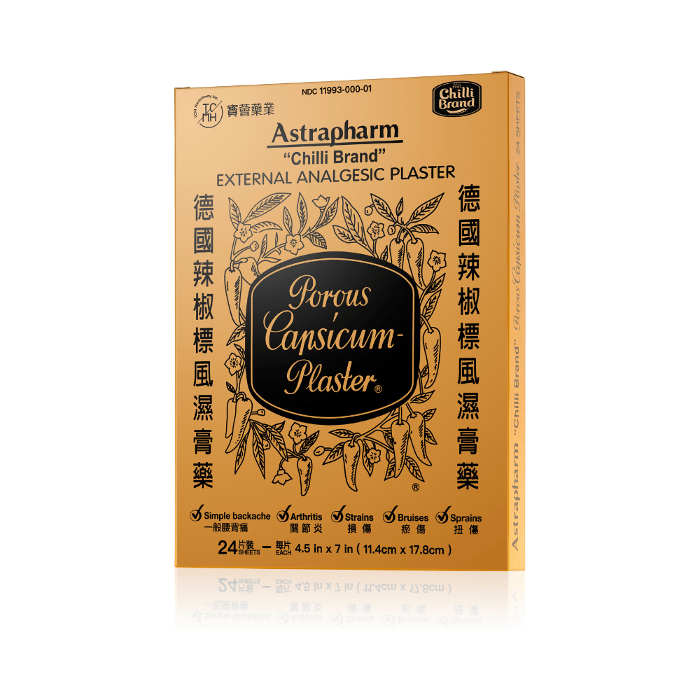 Chilli Brand Capsicum Plaster for Arthritis & Muscle Pain Relief, 24 HOT Patches (7" x 4.5")
