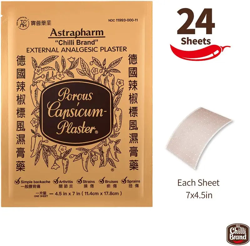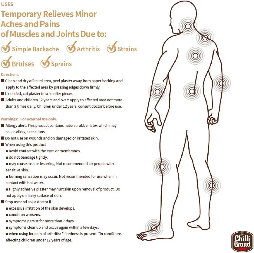 Experience effective relief from arthritis, muscle aches, and back pain with the Chilli Brand Capsicum Plaster by Astrapharm.